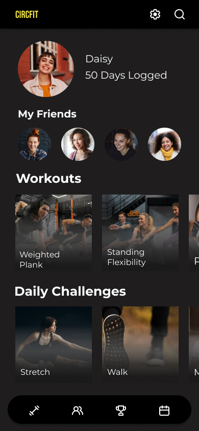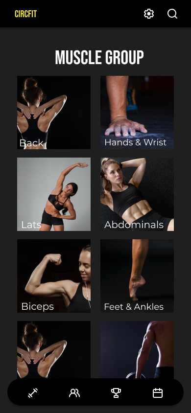 I designed a circus fitness app for both the casual and the professional circus artist. It offers guided workouts for circus specific training, the ability to tailor a workout to a certain muscle set or apparatus, and provides a place to share workouts and progress with friends. CircFit is a fitness app made for the circus artist.