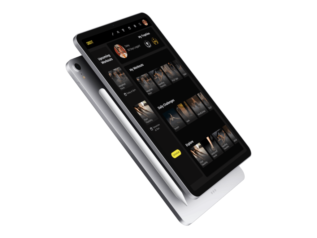 Tablet Mockup for ‘My Workouts’ page