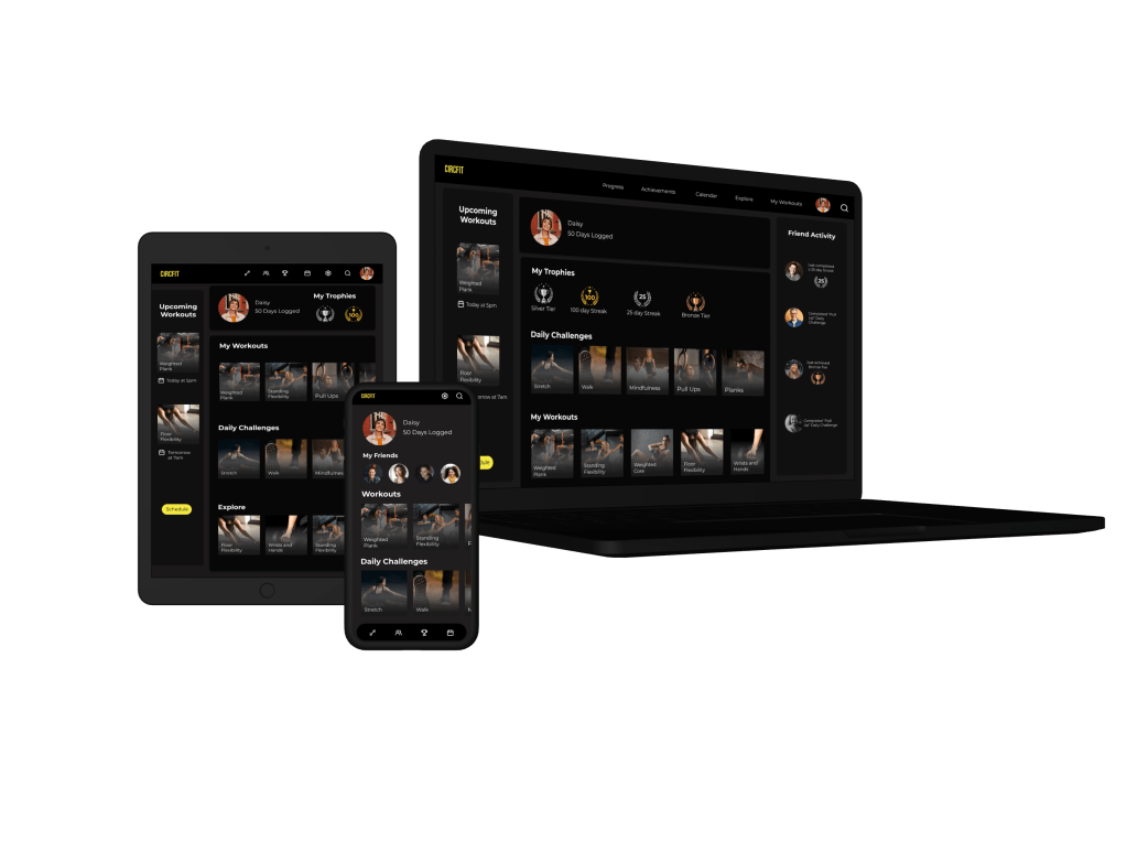The strong and simple look of Bebas Neue paired with Montserrat offered strong visual hierarchy. Inter provided a professional look for text bodies. These three fonts added to the app’s tone of strength and professionalism.