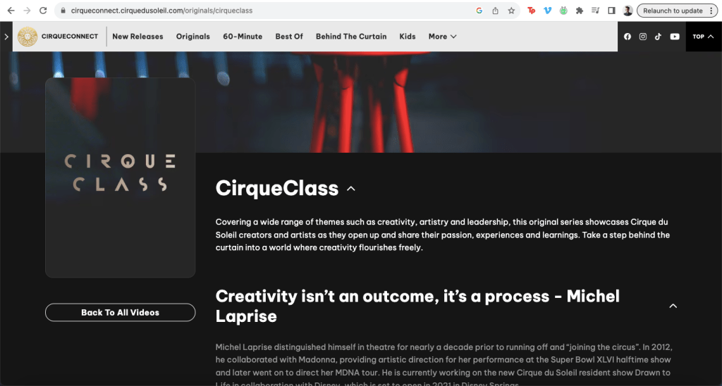 Cirque du Soleil offers online lessons for a small selection of circus skills.