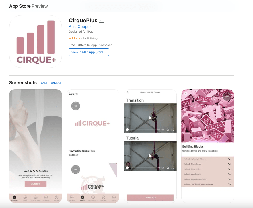 The data revealed there was a gap in the market. Circus artists needed a top tier fitness app that provided them with circus specific workouts.