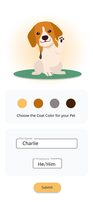 I edited the onboarding user flows to clarify that this is an app for humans who sought wellness through caring for a digital pet.