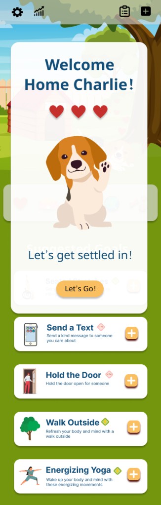 Many people want to learn how to improve their mental wellness and learn how to stay consistent with their goals. Due to wellness gaming apps being a new genre, there was a particular challenge in creating an onboarding process that showed the user what the app was about, how it would benefit them and how to use the app to reach their goals.