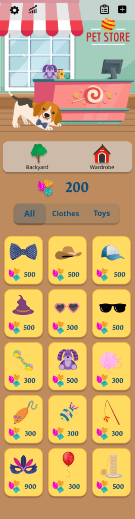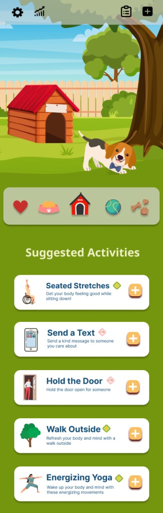I also revised the gaming features; now the users real world actions shape the personality of their digital pet. This creates ongoing intrinsic rewards for users like Stephanie by seeing the results of their efforts in their digital pet.